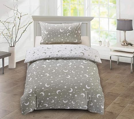 Utopia Bedding Ensemble De Literie Pour Enfants 100 Microfibre Etoile Et Lune Housse De Couette Reversible Housse De Couette 1 Taie D Oreiller Gris Lit Simple 135 X 0 Cm Amazon Fr Bebes Puericulture