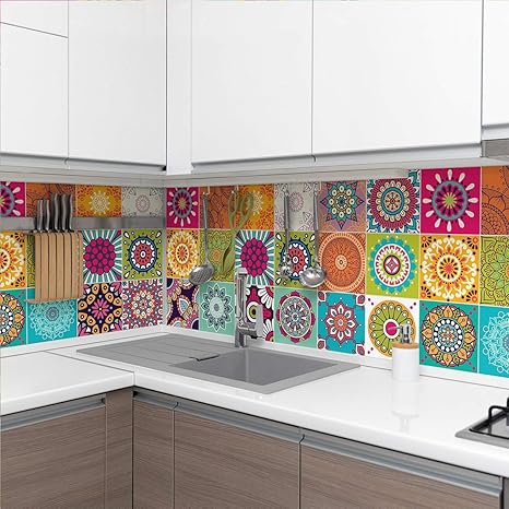 Stickers Muraux Cuisine Sticker Mural Carreaux De Ciment Adhesif Mural Stickers Muraux Azulejos Sticker Carrelage Adhesif Mural Salle De Bain 15 X 15 Cm 30 Pieces Carreau De Ciment Adhesif Amazon Fr Bricolage