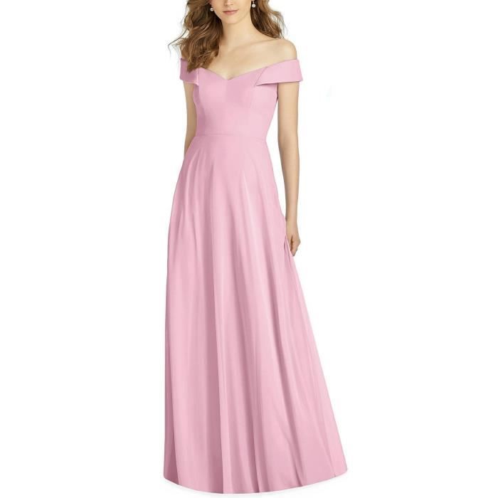 Rose Robe Demoiselle D Honneur Longue De Soiree Sexy Col V Bateau Epaule Denudee A Line Amincissant Evasee Grande Taille Rose Achat Vente Robe Cdiscount