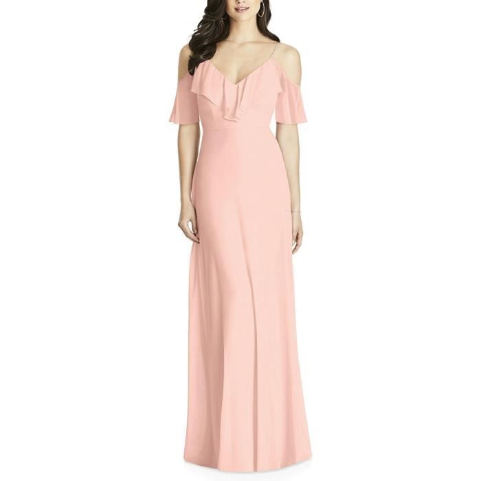 Rose Robe Demoiselle D Honneur Longue De Soiree Sexy Col V A Volant Epaule Denudee Bretelle Fine Amincissant Grande Taille Rose Achat Vente Robe Soldes Sur Cdiscount Des Le Janvier Cdiscount