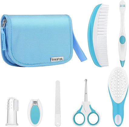 Trousse De Toilette Bebe 7 Pieces Ensemble Trousse De Premiers Soins Pour Bebe Concus Pour Garder Votre Bebe Soigne Et En Bonne Sante Bleu Vendu Par Intipal Amazon Fr Bebes Puericulture