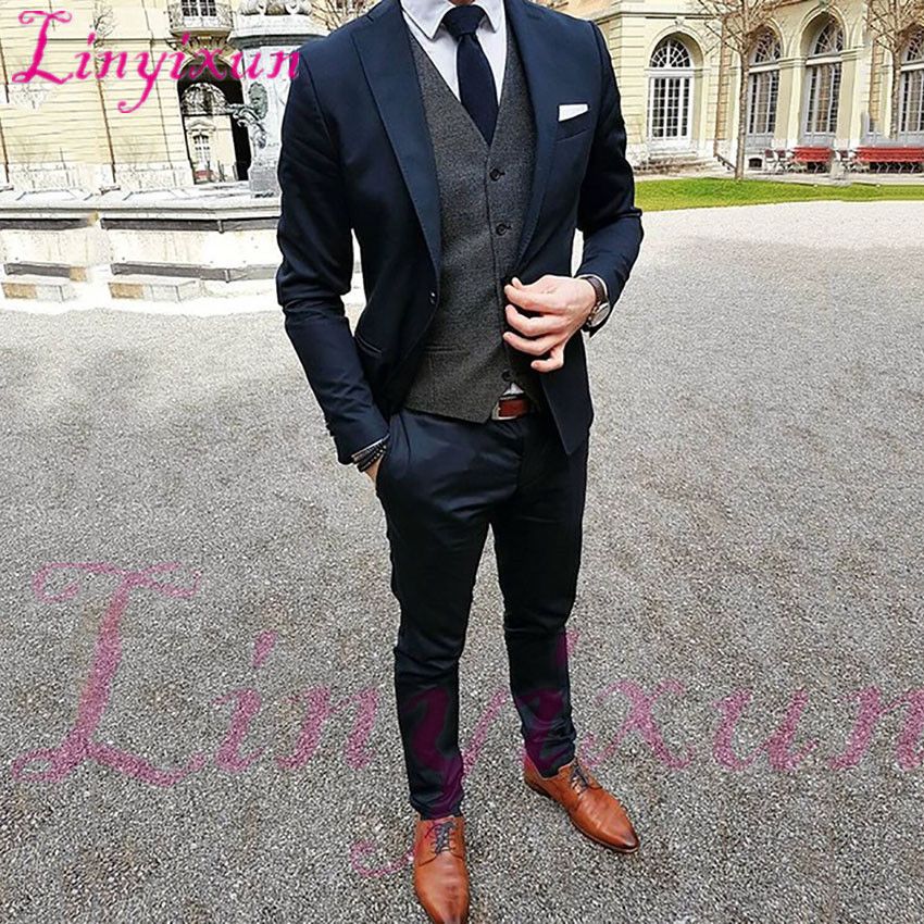 21 Linyixun Navy Blue Suit Men Street Style Slim Fit Men Suits Prom Smart Business Groom Dress Tuxedo Latest Designs Terno From Hongzhang 158 63 Dhgate Com