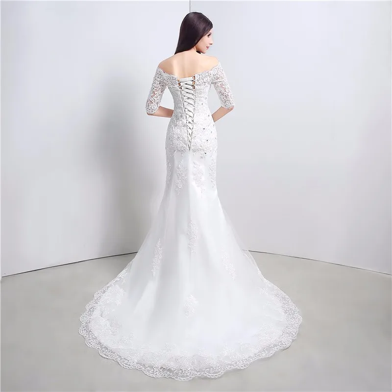 Manches Courtes Dentelle Sirene Robes De Mariee Perlees A Lacets Robe De Mariee Pas Cher Hors Epaule Robes De Mariee Aliexpress