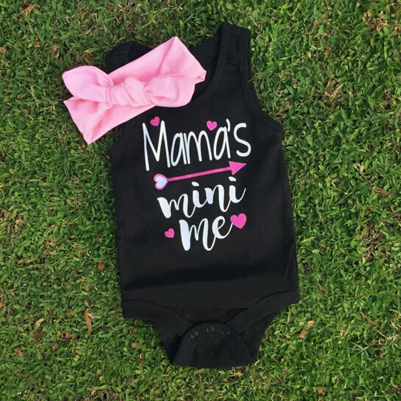 Nouveau Ne Pas Cher Infantile Vetements Bebe Fille Sans Manches Maman De Mini Me Lettre Noir Tenues Sunsuit Vetements Drole Bebe Bandeau Ensemble Aliexpress