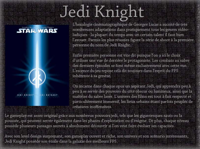 The Jedi Mace Windu, KiAdiMundi, and Kit Fisto were among those who served as de facto generals of the clone army during the Battle of Geonosis The rank of general provided the Jedi with the authority to lead the Grand Army of the RepublicA Jedi general was the commanding officer of a battalion of clone troopers —elite soldiers cloned from the template of Jango Fett and conditioned to. Few, though, are foolish enough to challenge a seasoned Jedi Knight unless they have the skills and technology to even the odds For many, the Jedi Knight is the guardian of a precious dream;. Dans le titre d'un star wars il contreattaque;.