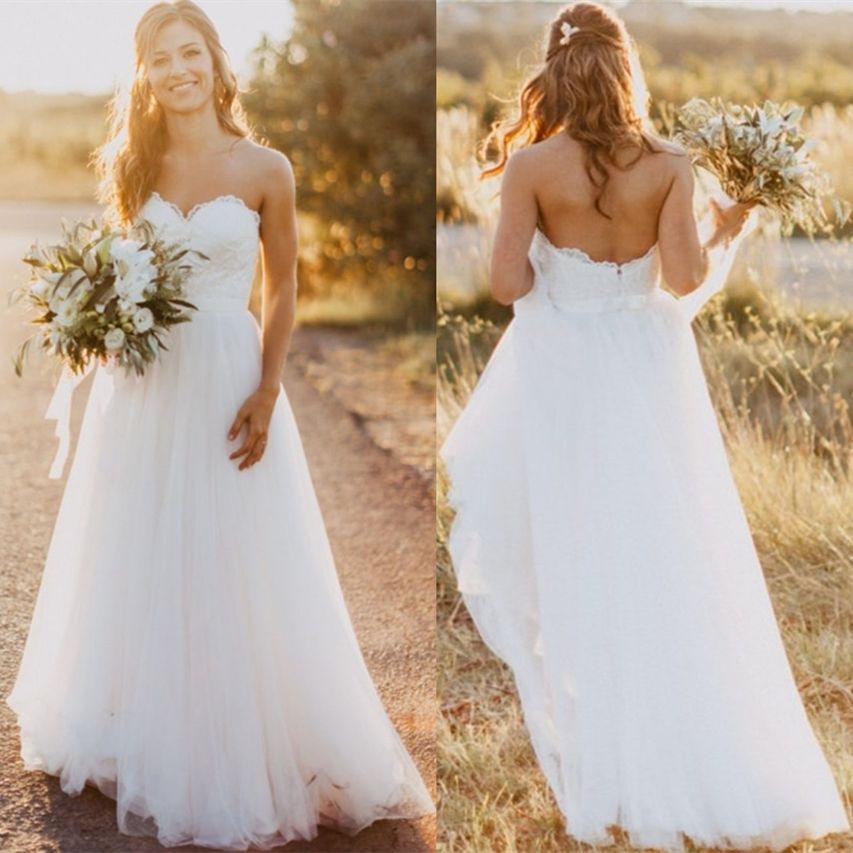 Acheter Robes De Mariee Pas Cher Robe De Mariee Une Ligne Bretelles Dentelle Tulle Robes De Mariee Robes De Grossesse Enceinte Boho Robe En Blanc Couleur Ivoire De Du Kissbridal