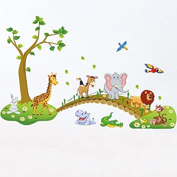 Ecloud Shop Jungle Sauvage Animaux Sticker Mural Sticker Pour Bebe Enfants Chambre Wallpaper Bebe Puericulture Stickers Muraux