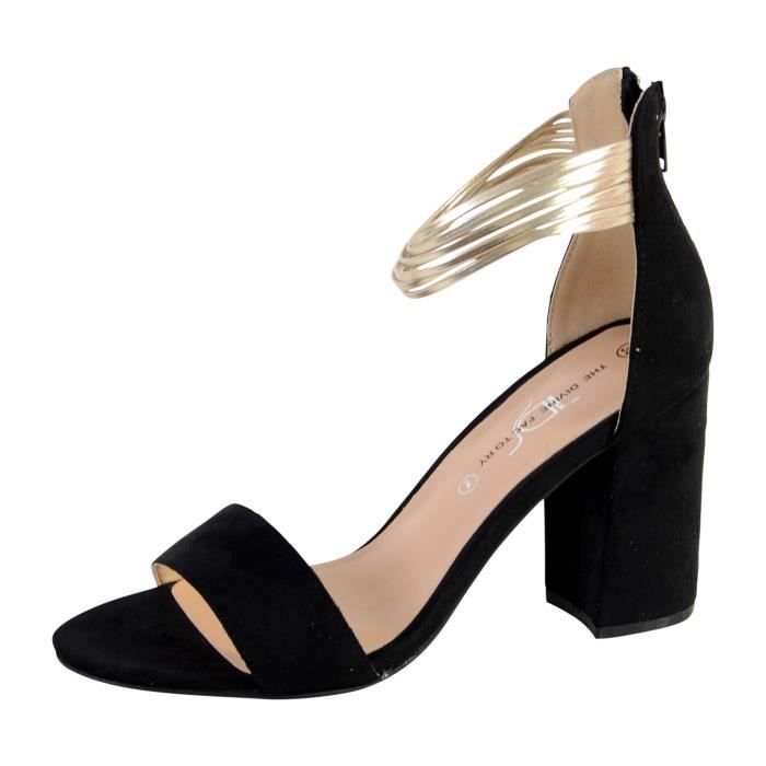 Sandales Suedine Noires A Talon Carre Femme Pas Cher La Modeuse