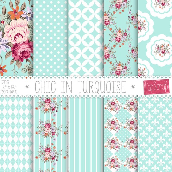 Shabby Chic Digital Paper Chic In Turquoise Etsy
