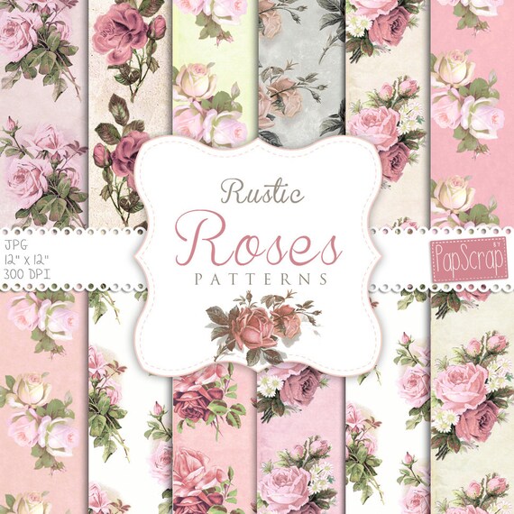 Shabby Chic Digital Paper Rustic Roses Pink Etsy