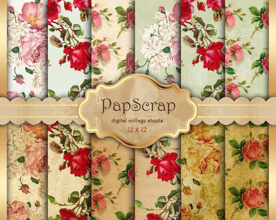 Shabby Chic Digital Paper Floral Digital Paper Decoupage Etsy