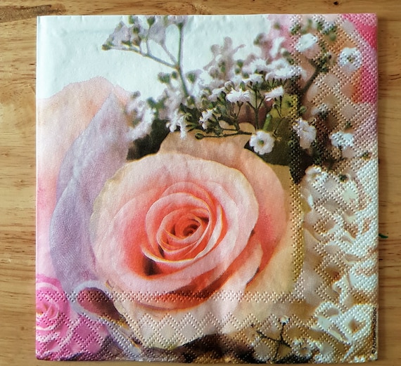 1 Single Decoupage Paper Cocktail Napkin Tea Rose Floral Shabby Chic Ebay