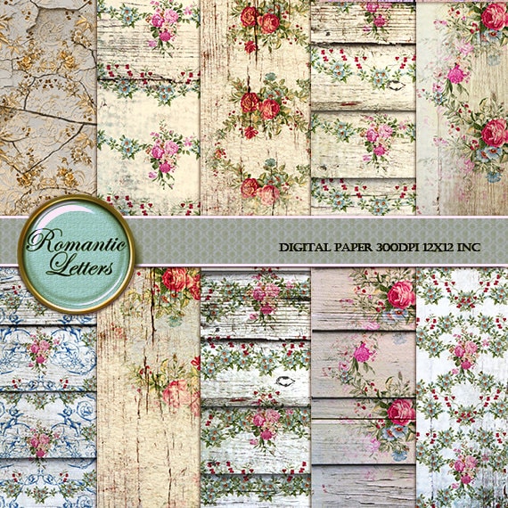 Shabby Chic Digital Paper Shabby Romantic Etsy