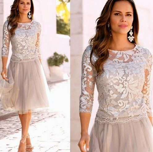 Acheter Moderne Courte Mere De Robes De Mariee En Dentelle Tulle Genou Longueur 3 4 Manches Longues Mere Tenue De Soiree Courtes Robes De Bal De 80 1 Du Pkmnjof Dhgate Com