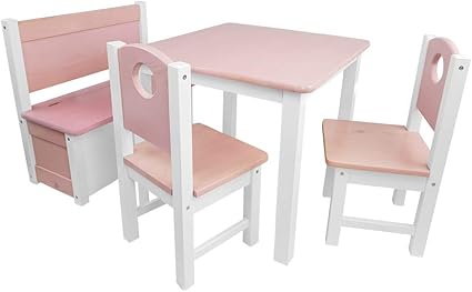 Sundeluxe Ensemble Table Et Chaises Pour Enfants 1 Table 2 Chaises 1 Banc Coffre En Pin Massif Pour Enfants Petit Bureau Enfant Mobilier Enfant Pour Jouer Et Peindre Couleur Rose Amazon Fr