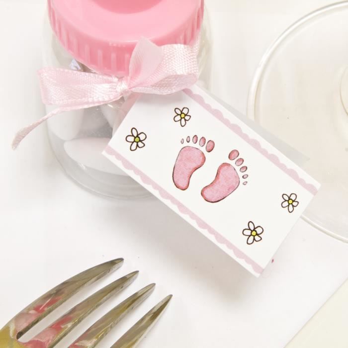 Lot De 10 Etiquettes Bapteme Fille Petits Pieds 9 X 2 5 Cm Achat Vente Decoration De Table Cdiscount