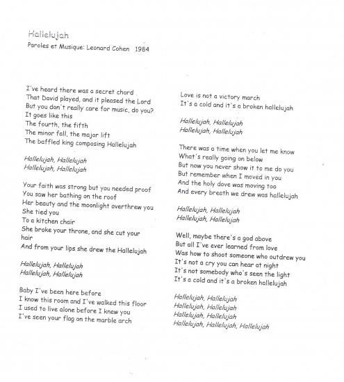 Hallelujah Paroles En Francais のギャラリー