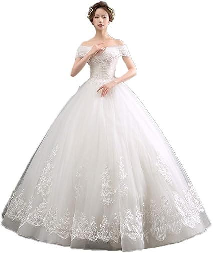 Robe De Mariee Robe De Mariee Pour Mariee Avec Epaule Et Dentelle Florale Pour Une Occasion Speciale De Mariage Couleur Blanc Taille S Amazon Fr Cuisine Maison
