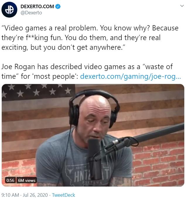 Dexerto S Tweet Joe Rogan S Video Games Are A Waste Of Time Know Your Meme