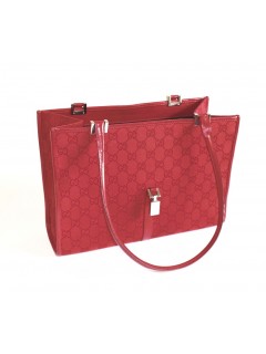 Lot Art Gucci Sac En Toile Monogramme Et Cuir Rouge