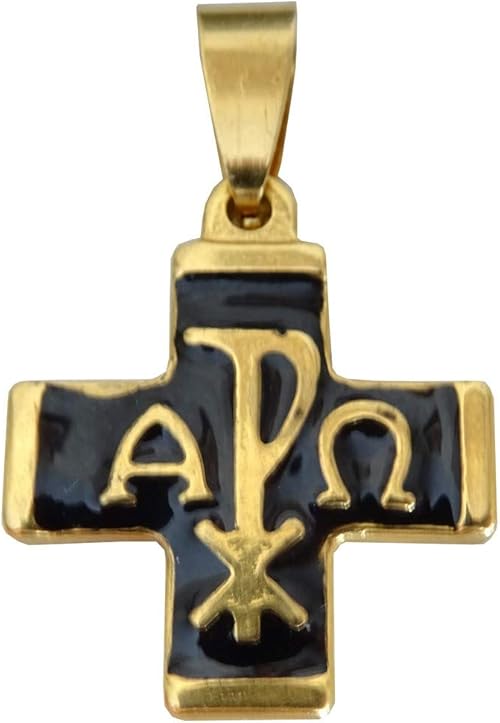 Religion Chretienne Tres Jolie Croix Emaillee Du Chrisme De L Alpha Et De L Omega Et Son Cordon Cuir Amazon Fr Bijoux