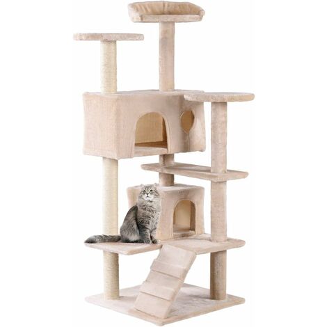 Costway Arbre A Chat 130cm Grande Capacite De Griffoir Multi Niveaux Beige