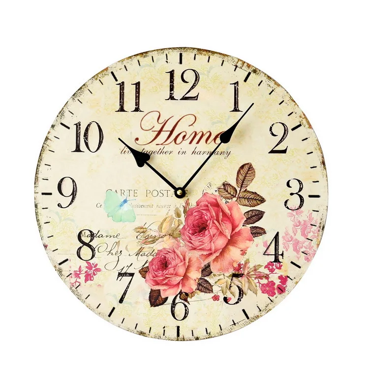 ჱcm Fleur Bois Muet Horloge Murale Style Pastoral Sans Monture Grandes Horloges Murales Num Riques Salon Coration La Maison Cadeaux Artisanat A660