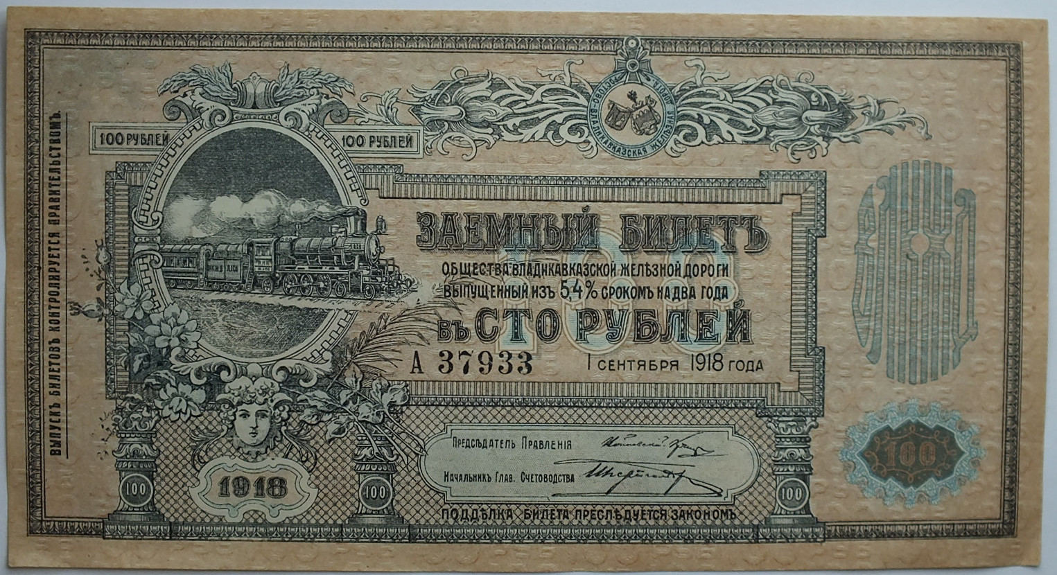 Russland Nord Kaukasus 100 Rubel 1918 Vladikavkaz Railroad Company S 594 Standard Catalog Of World Paper Money 1 Ma Shops