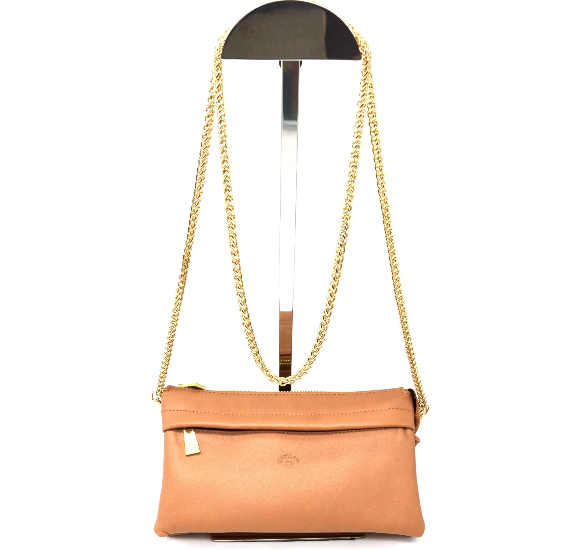 Hdb01 Pochette Sac Cuir De Vachette Camel Avec Chaine Bandouliere Et Fermetures Zip Metal Dore Oh My Shop