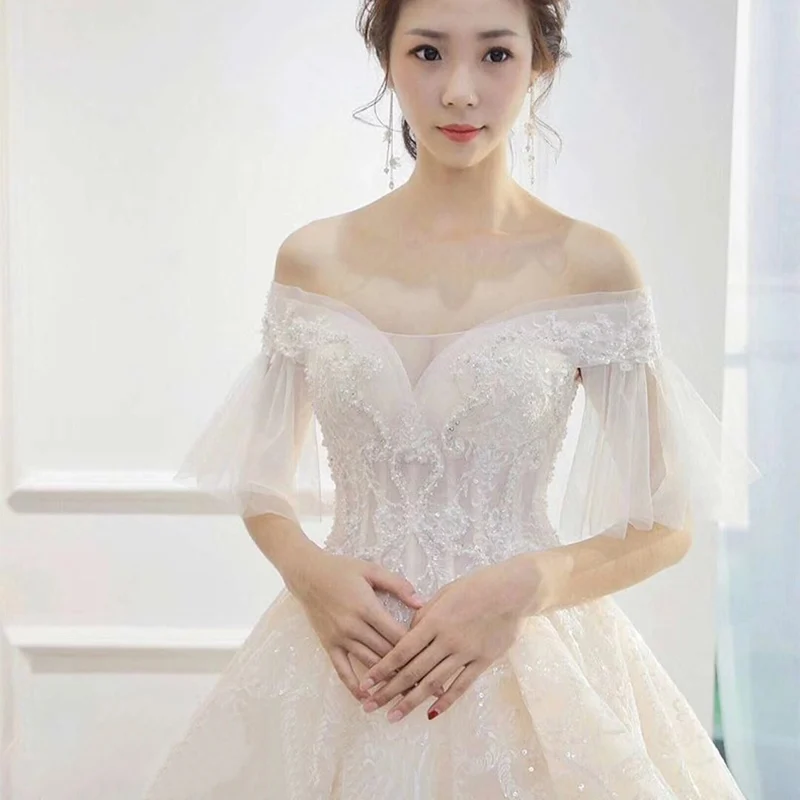 Robe De Mariee De Luxe 19 Robe Mariee Perle Broderie Appliques Modeles Robe De Mariee Hors Epaule Longue Queue Robe De Mariee Ts476 Aliexpress