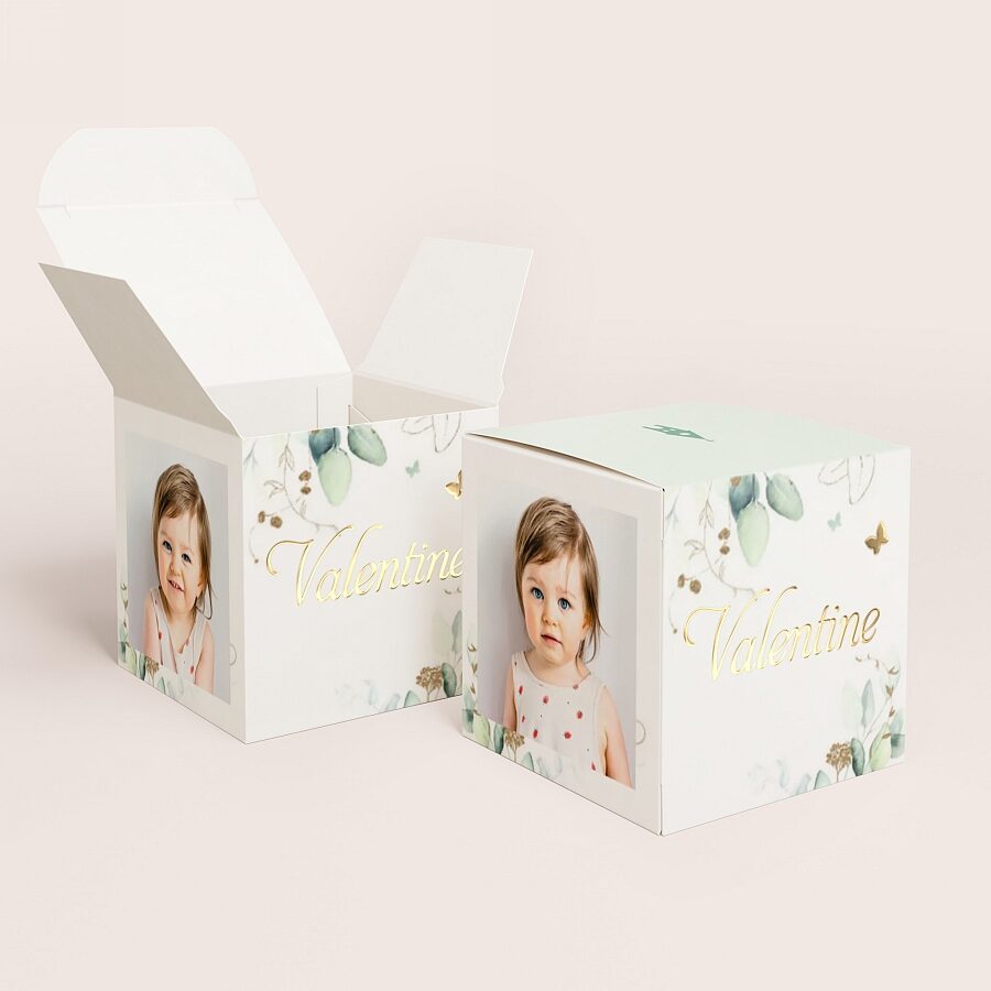 Boite A Dragees Bapteme Eucalyptus Et Fleurs Dorees Naissance Tadaaz