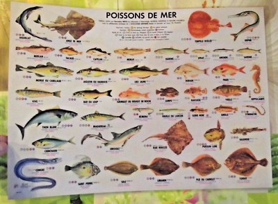 Set De Table Poster Print Poissons De Mer Hippocampe Torpille Anchois Congre Ebay