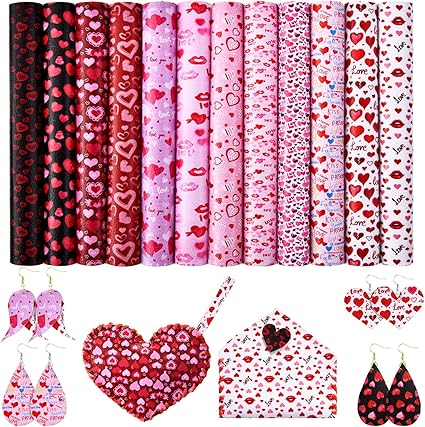 12 Paquets De Saint Valentin Feuilles Tissu Simili Cuir Decor Avec Motif De Coeur Amour Et Toile De Tissu Pour Bricolage Artisanat De La Saint Valentin 8 X 9 3 Pouces Amazon Fr Cuisine