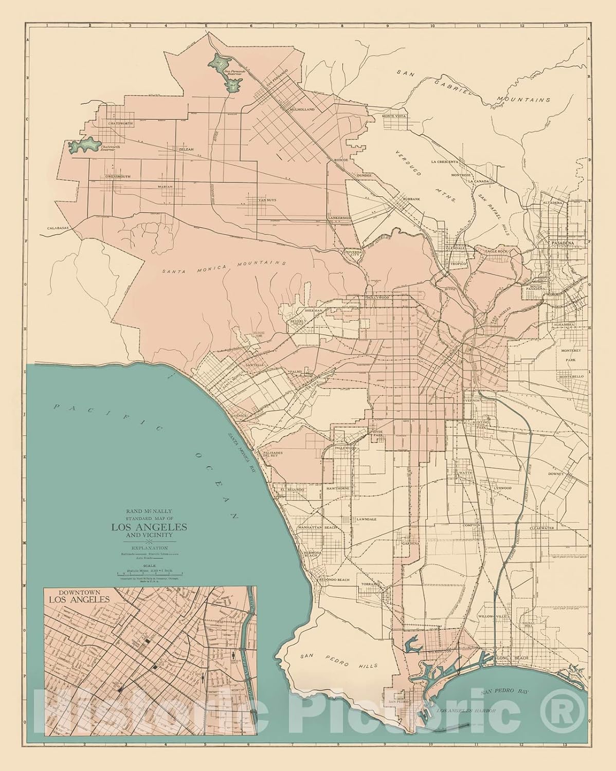 Amazon Com Historic Map Standard Map Of Los Angeles And Vicinity 1927 Rand Mcnally Company Vintage Wall Art 24in X 30in Posters Prints