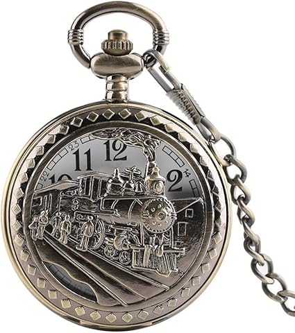 Montre A Gousset Moderne Acier Graver Decor Locomotive Ebay
