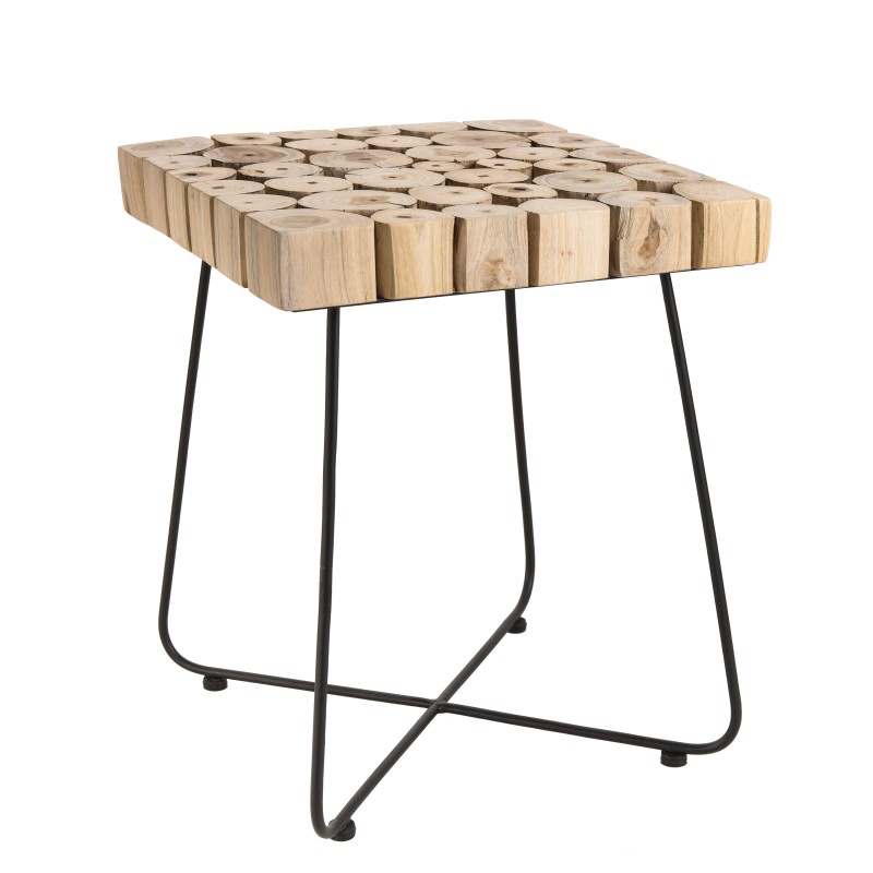 Table D Appoint Carree Bois Plateau Branches Teck Pieds Epingles Scandi Metal Hutan Bobochic