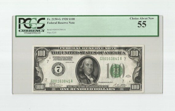 1928 Us 100 Dollar Bill Chicago Federal Reserve Lucky 7 Etsy
