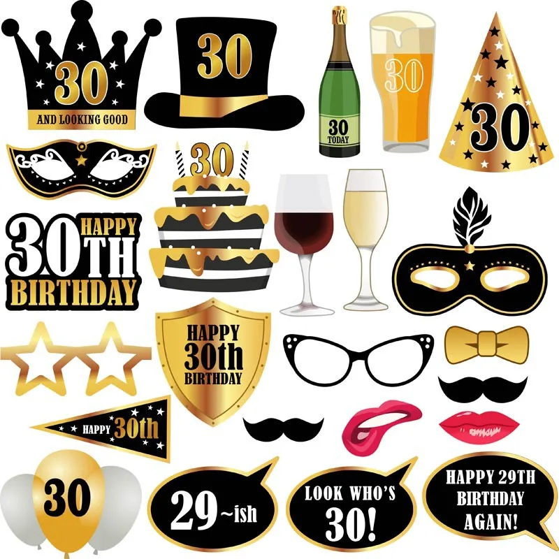 1 Set Photo Accessoires Adulte 30 Ans Anniversaire Homme Femme Moustache Carton 30th Celebration Joyeux Anniversaire Fete Decorations Aliexpress