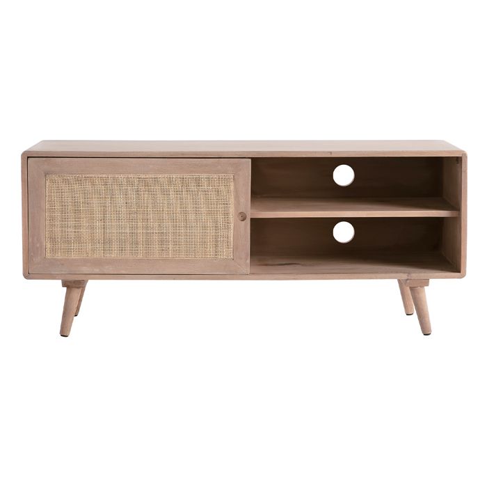 Meuble Tv Bas En Bois Et Rotin Tisse Collection Sand Hellin
