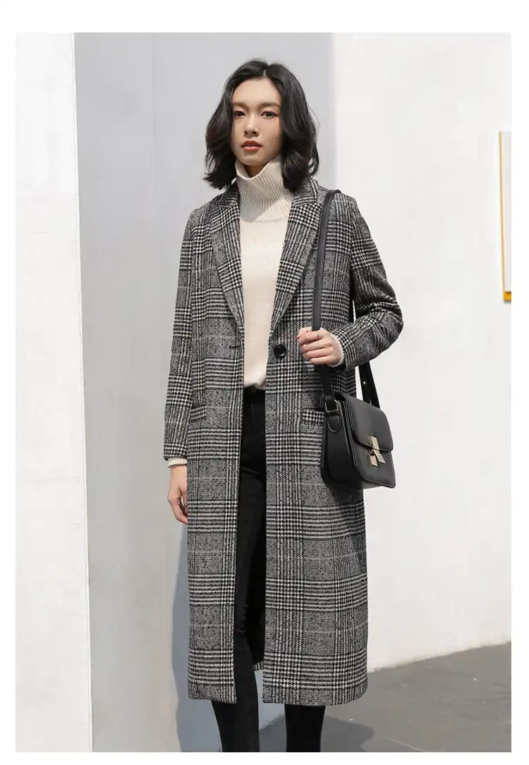 Vestes En Laine Femme Manteau En Laine A Carreaux Nouvelle Mode Manteau Long Printemps Automne Hiver Aliexpress