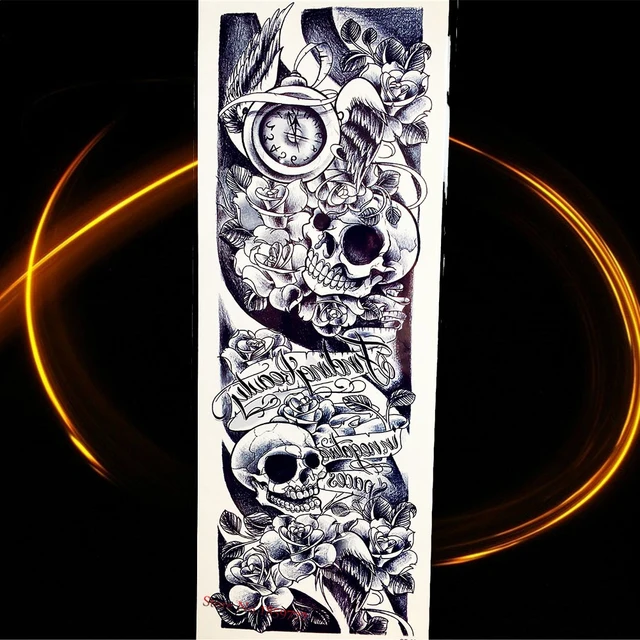 Waterproof Temporary Tattoo Sticker Full Arm Large Skull Old School Tatoo Stickers Fake Tattoos For Men Women New Arrival Wallcorners Art Canvas
