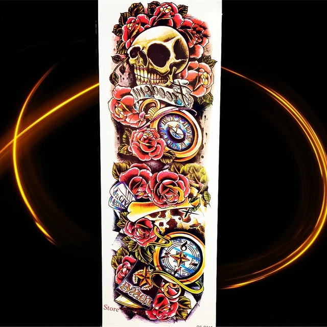 25style 46 17cm Old School Skull Rose Flower Arm Temporary Tattoo Women Men Big Large Body Art Compass Waterproof Tattoo Sticker Temporary Tattoos Aliexpress