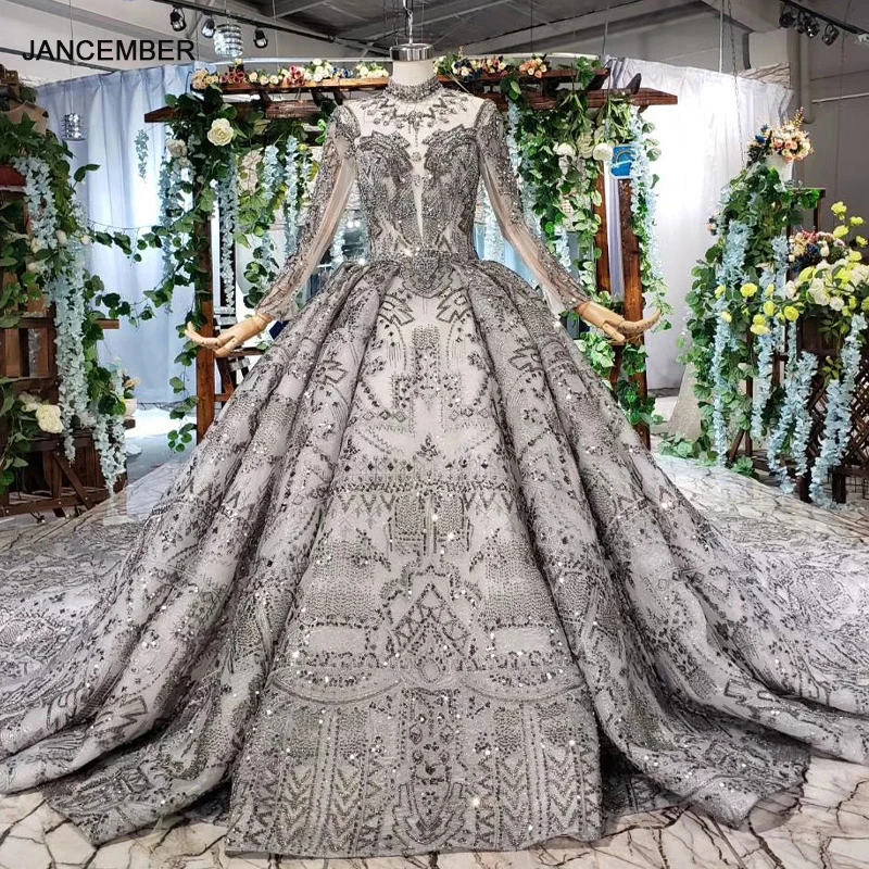 Htl540 Luxe Dubai Robes De Soiree 21 Pour Occasions Speciales Col Haut A Manches Longues Gris A La Main Dentelle Longue Robe Aliexpress