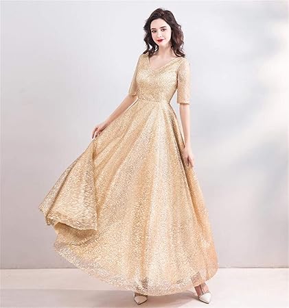 Lyjfsz 7 Robe De Mariee Robe De Soiree De Luxe Elegante Et Belle Robe De Mariee Champagne Paillettes No Amazon Fr Sports Et Loisirs