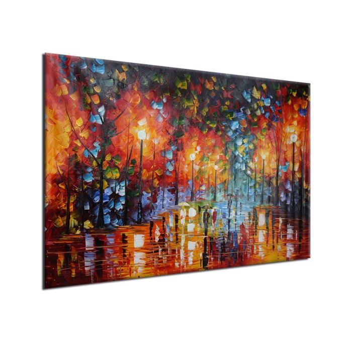 Tableau Peinture Huile La Rue Sous La Pluie Toile Paysage Abstraite Peint A Main Achat Vente Tableau Toile Soldes Sur Cdiscount Des Le Janvier Cdiscount