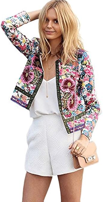 Veste Femme Kolylong Femmes Imprime Floral Veste Courte A Manches Longues Outwear