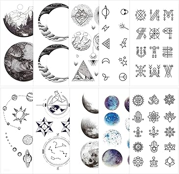 Konsait 78 Tatouage Temporaire Pour Adulte Enfants Femme Homme Tattoos Etanche Noir Tatouages Temporaires Bras Poignet Body Tattoo Sticker Tatouages Ephemeres Univers Etoile Lune Planetes Amazon Fr Beaute Et Parfum