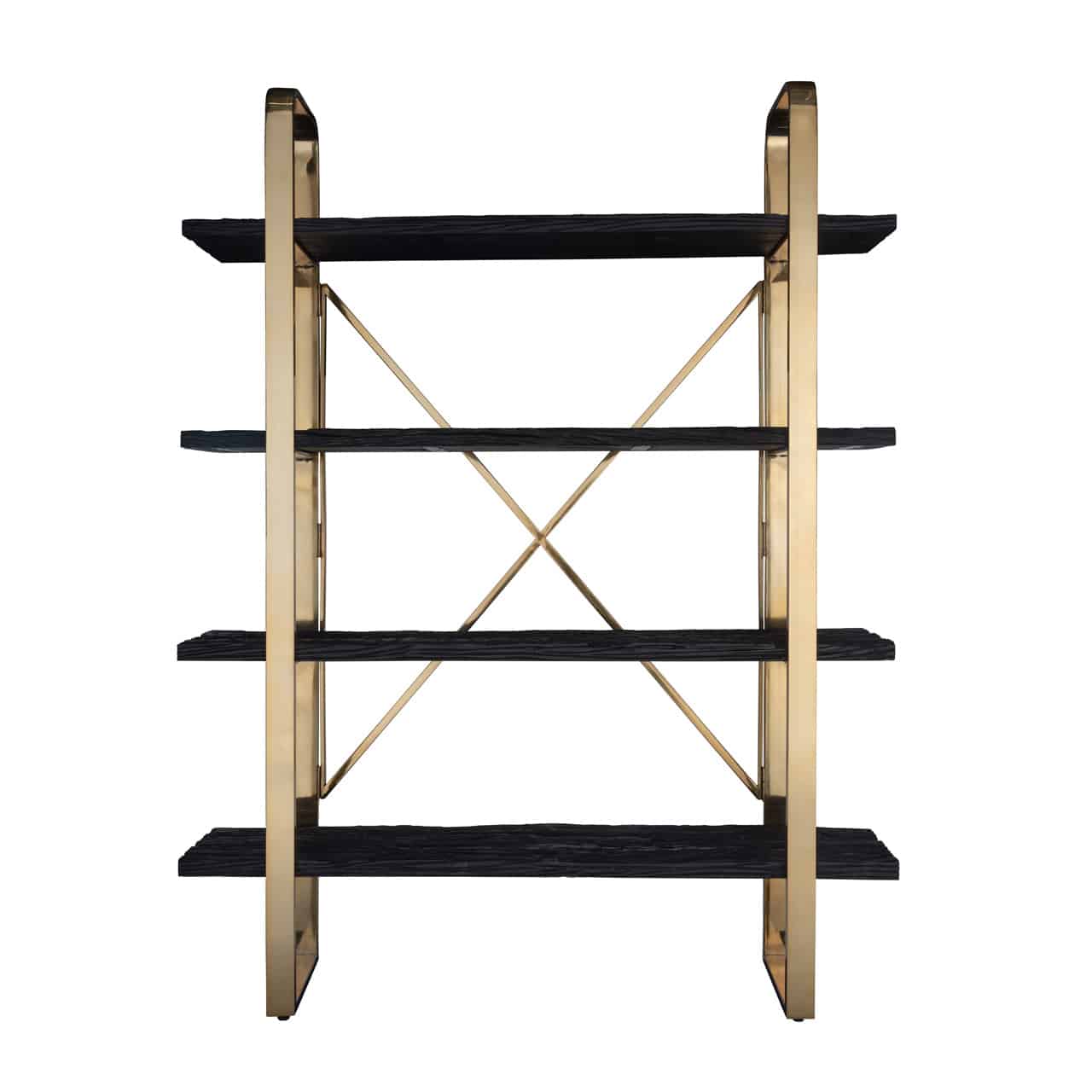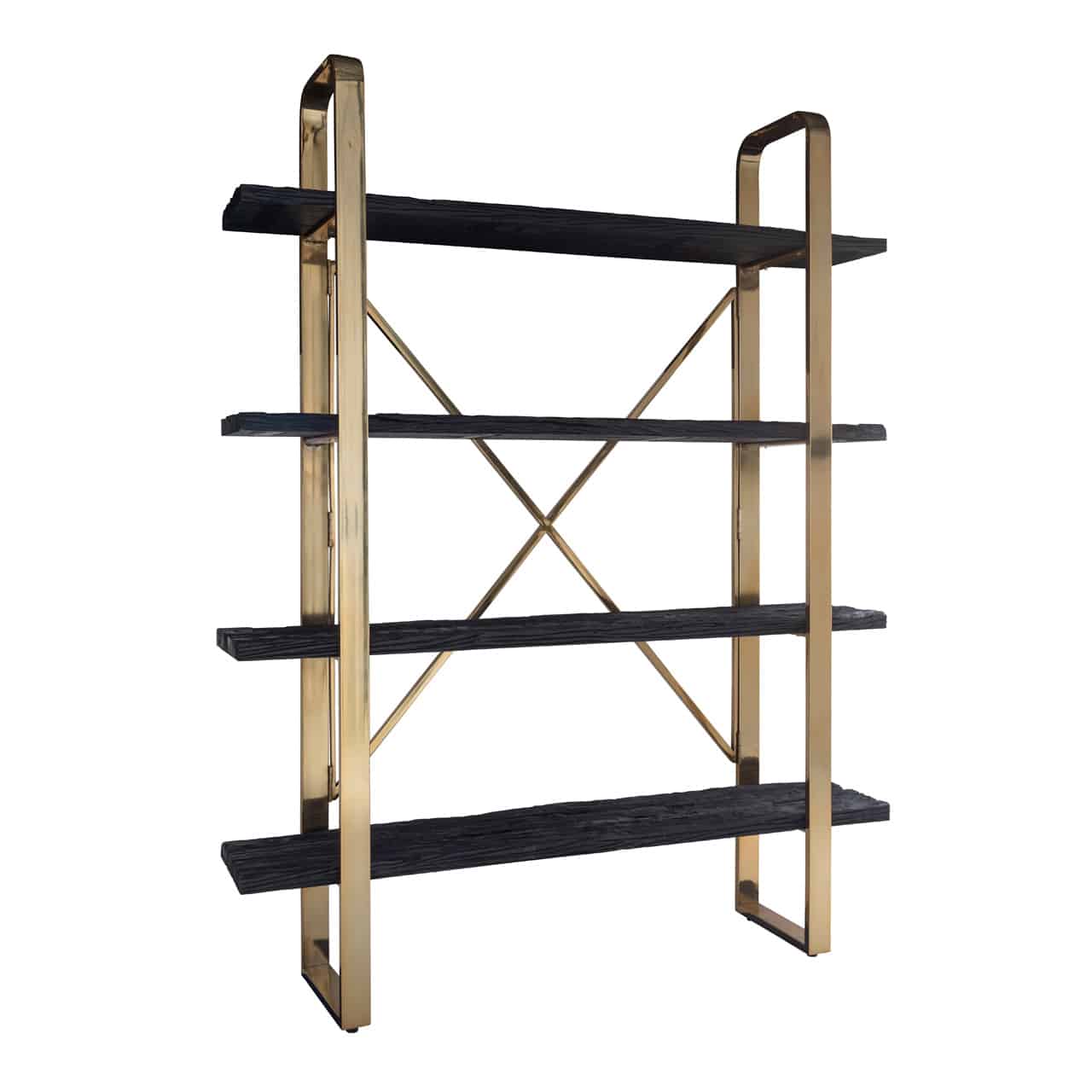 Bibliotheque Bois Brut Noir Metal Acier Inoxydable Or Dore Vendome Meuble De Qualite Bois Deco