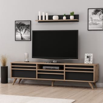192 10 Sur Homemania Meuble Tv Hira Moderne Avec Portes Etageres Pour Salon Noyer Noir En Bois 180 X 35 X 48 Cm Achat Prix Fnac