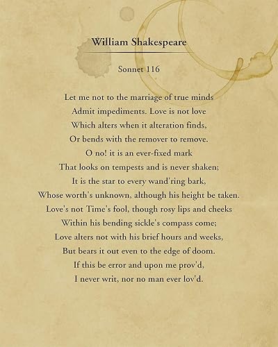 Amazon Com William Shakespeare Sonnet 116 Poetic Wall Art Sign 11 X 14 Inspirational Literary Wall Decor Vintage Parchment Poetry Print Ready To Frame Perfect Wall Decor For Home Office Studio Library Handmade